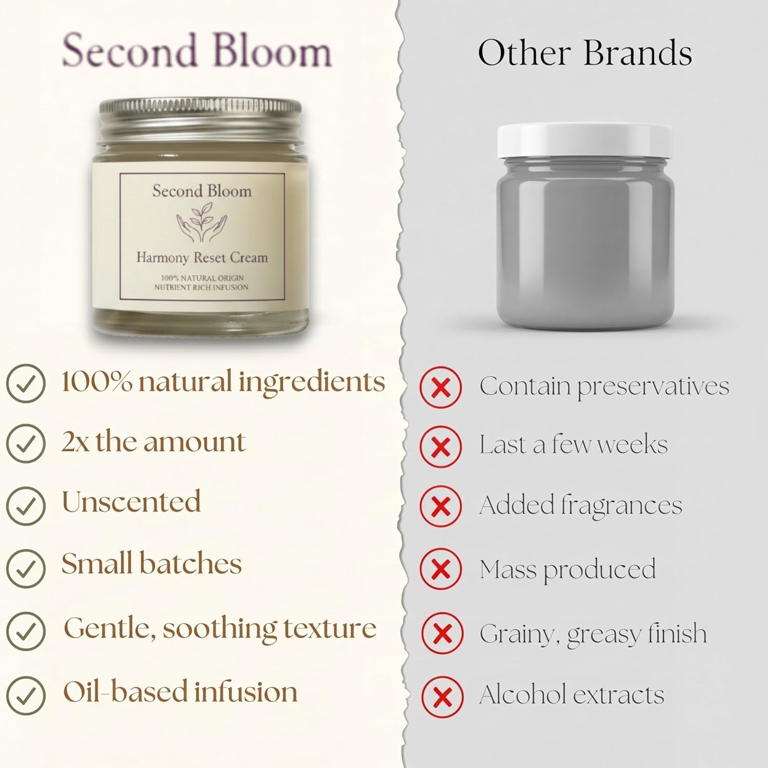 Most progesterone creams on the market are either synthetic progestins (which behave differently in your body than natural progesterone) or they're generic "hormone balance" creams with trace amounts of wild yam buried under fillers and fragrance. Second Harmony is formulated specifically with a concentrated diosgenin-rich wild yam extract as the primary active ingredient — not an afterthought. The delivery also matters. Many women apply progesterone creams inconsistently or to the wrong areas. We recommend applying to thin-skinned pulse points like the inner wrists, inner arms, or behind the knees before bed every night. Consistency and placement are everything. The cream itself is only half the equation — how and where you use it is the other half, and we walk you through exactly how to get the most from every application.